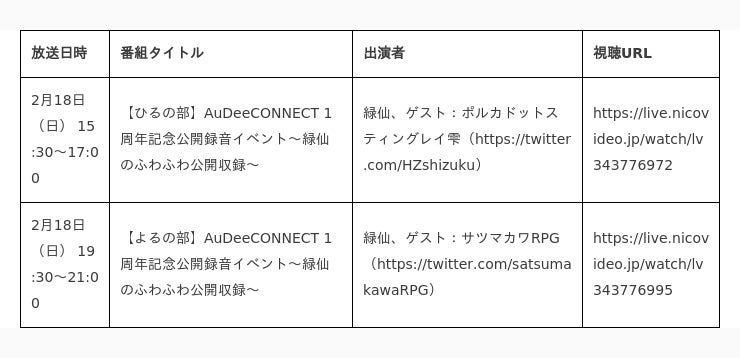 【にじさんじ】緑仙出演のラジオ番組「AuDeeCONNECT」 歌ありトークありの公開録音イベント 2/18 15時半~、ニコ生で独占配信が決定