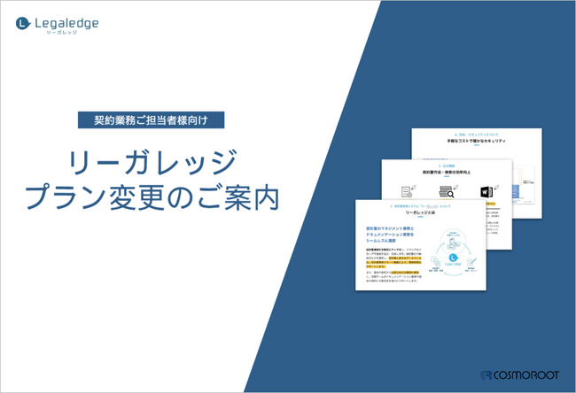 契約業務一連の流れをDX化するクラウドサービス「リーガレッジ」を提供する株式会社コスモルート(本社:東京都港区 代表取締役社長:島本 鉄弥)は、リーガレッジの提供プランを変更いたしました。
