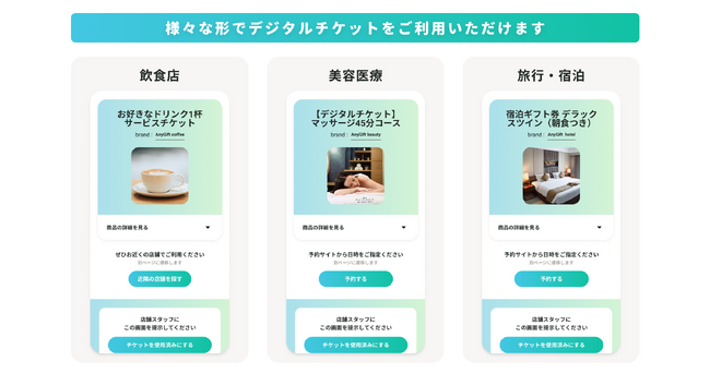 今回の新機能のリリースにより、飲食店や美容サロンの施術、旅行やホテルの宿泊など店頭で利用できるデジタルチケットが“eギフト”で贈れるようになります。