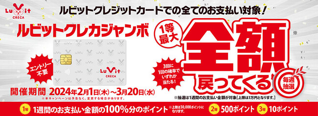 株式会社バローフィナンシャルサービス(本社:愛知県名古屋市、代表取締役社長:小池 孝幸)は、ルビットクレジットカードにおきまして、2024年2月1日(木)より「ルビットクレカジャンボ」を実施します。