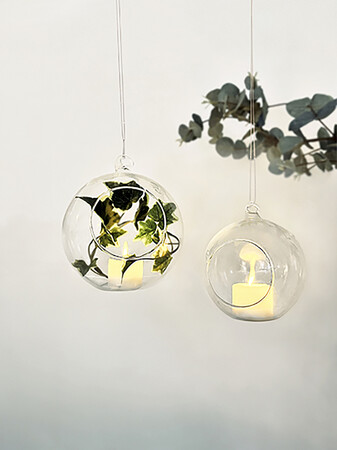 LEDなので、植物やテキスタイルとのコーディネートなど、生火ではできないアレンジも自由自在。
