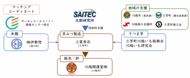 この製造方法をCEのワンストップ支援拠点である「サーキュラーエコノミー推進センター埼玉」と連携し、食品加工を行う上富食品(三芳町)へ橋渡しを行い、製品化しました。