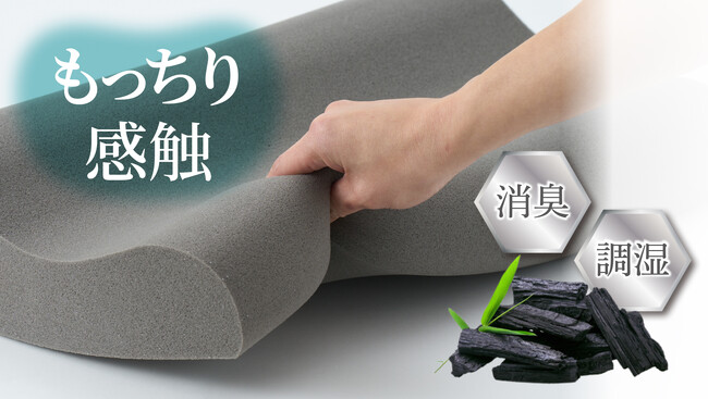 一般的な低反発素材は気温の下がる冬は硬くなりがちという欠点がありますが、GOKUMINは原材料を独自配合することでその欠点を克服。ソフトな感触が一年中続く枕を開発しました。また、優れた調湿効果と高い消臭・抗菌効果のある竹炭を枕本体に練り込んでおり、寝汗による気になる臭いを消臭します。