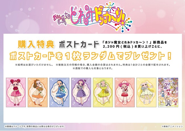 『おジャ魔女どれみドッカ~ン!』新商品を1会計2,200円(税込)以上お買い上げごとに、購入特典としてポストカード(全8種)をランダムで1枚プレゼント。