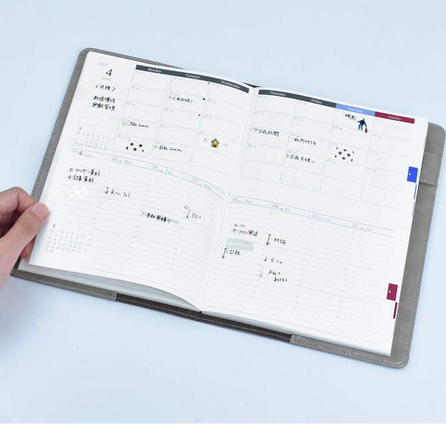 セパレートダイアリーは手帳の中心部が上下で分かれる仕様です。見開き1ページで手帳2冊分の用途役割を果たす点が他社にない独自の特長です。月間・週間・日々のTODO管理・ガントチャートを見開き1ページで確認できます。ページの移動をせず、月間の予定を見ながら一週間の予定や1日の予定を見ることができる点が支持され2012年の発売以来累計約135,000冊を販売しました。主な購買層は30-50代の女性で全体の約8割を占めています。上下見開き1ページで様々な予定やTODOを管理できるため「仕事とプライベートをわけて記入できる」「自分や家族の予定を見やすく書ける」といった感想が多く寄せられています。