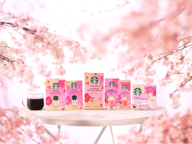 「スターバックス(R) スプリング ブレンド」は、春の訪れを告げる、明るくてジューシーな味わいのコーヒーを、スターバックスのお店以外のスーパーマーケットやオンラインショップなどでも手にしていただくために開発された春季限定の製品です。ラテンアメリカ産と東アフリカ産のコーヒーをブレンドし、ミルクチョコレートとスイートオレンジのような上品な風味と、バランスのよいコクが特徴で、新しい季節のはじまりの、華やかな気分に寄り添うコーヒーです。鮮やかなピンク色の、満開の桜の花びらが舞うパッケージデザインが特徴で、「スターバックス オリガミ(R) パーソナルドリップ(R) コーヒー」、「レギュラーコーヒー(粉)」の2タイプを取り揃えています。