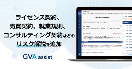 GVA assistが、ライセンス契約、売買契約、就業規則、コンサルティング契約などのリスク解説を追加しました