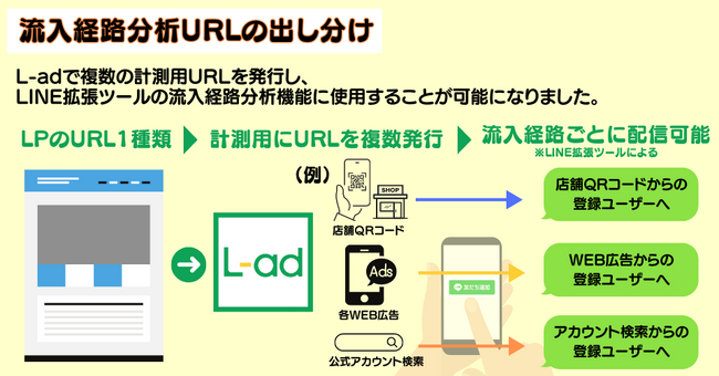 1枚のLPで複数の流入経路分析URLを自由に生成可能。LINE拡張ツールの「流入経路分析機能」とL-adが連携!