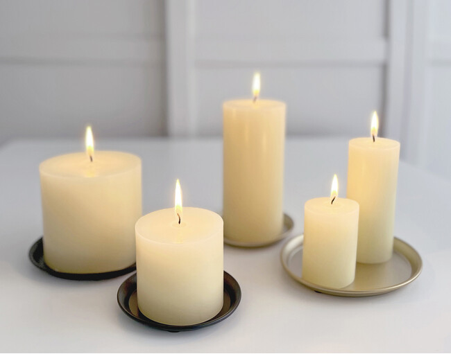 内径が90mm、120mmの2サイズで様々なピラーキャンドルと組み合わせやすい金属製のトレー。