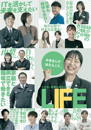 山梨県では、大学生等の県内就職を促進するため、若者の視点から「山梨県で働き暮らす魅力」や「県内企業の魅力」を発信するリーフレット「やまなし就職応援BOOK LIFE」及び県WEBサイト内特集ページを作成しました。
