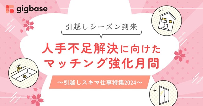 ギグベース株式会社(本社:東京都千代田区、代表取締役:田中 祥司、以下「当社」)が運営するジョブプラットフォーム「gigbase(ギグベース)」は、不動産業界の繁忙期となる引っ越しシーズンに向けた人手不足の課題解消を目指し、2024年2月7日(水)~3月31日(日)に不動産関連案件とタレントの皆様とのマッチング強化月間を実施、引っ越し関連業務の特集ページを公開いたします。