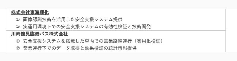 株式会社東海理化 (本社:愛知県丹羽郡大口町 代表取締役社長:二之夕 裕美、以下「東海理化」)と川崎鶴見臨港バス株式会社(本社: 神奈川県川崎市 取締役社長: 平位 武、以下「川崎鶴見臨港バス」)は路線バス内での人身事故の防止をはじめとした自動運転社会の実装に向けた安全支援システムの実用化に向け、共同検証を開始します。