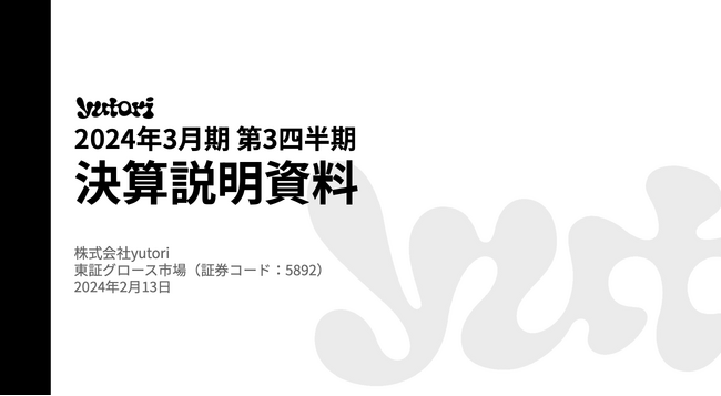 株式会社yutori 決算説明資料および説明動画の公開に関するお知らせ