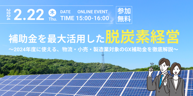 2024年2月22日(木)15:00開催|無料ウェビナー補助金を最大活用した脱炭素経営