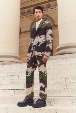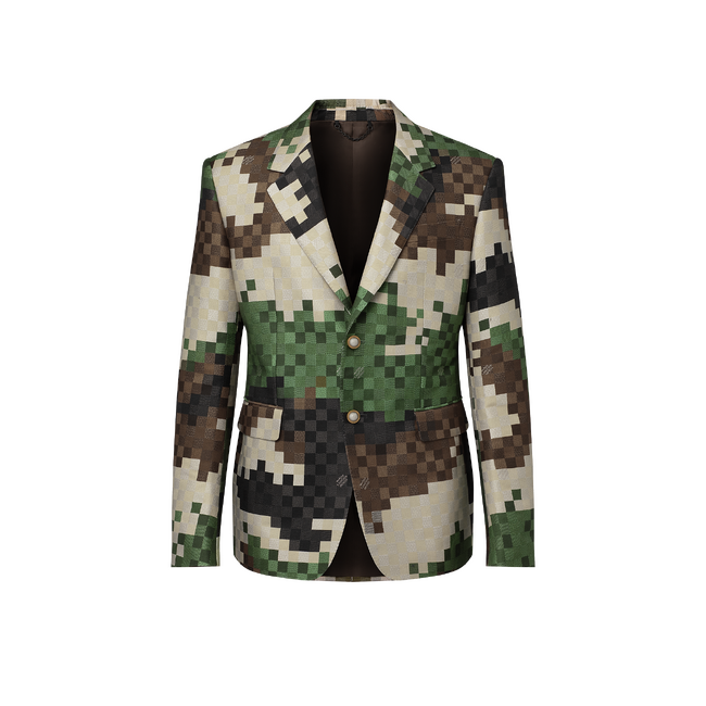 2024春夏メンズ・ファッションショーに登場した、メンズ クリエイティブ・ディレクター ファレル・ウィリアムスが手掛けた今シーズンを象徴とするピクセル状のダミエ・カモフラージュ パターンの、ダモフラージュ・モチーフをあしらったアイテムが登場。