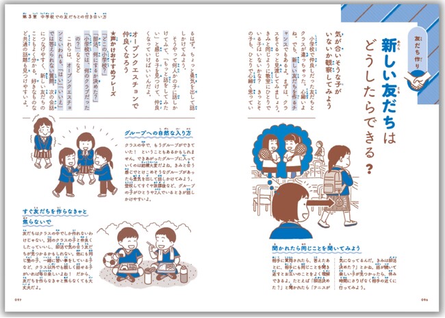 本書は、入学前に知っておきたい効率的な勉強方法や部活の様子から、入学後も役立つ友だちとの付き合い方・SNSの使い方など、楽しい中学生活のコツが盛りだくさん。中学3年間のお守りになる1冊です。