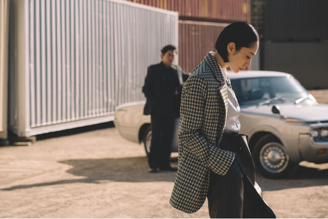 古典西部劇の緊張感あふれる決闘シーンを思わせる本作品では、砂埃の舞うコンテナヤードを舞台に、2024春夏ウィメンズコレクションに身を包んだ深津が、対峙する男性に強い視線を差し向けます。