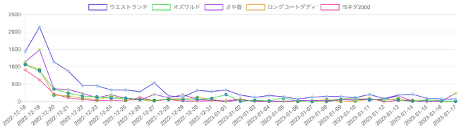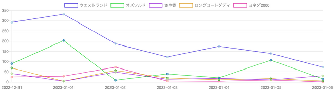ウエストランドの記事は12月31日から1月1日にかけて300から350あり、その後は各日100から200を保っています。