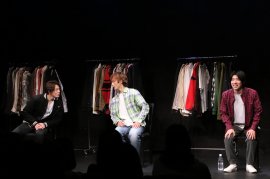 この日は1回目の公演らしく稽古場や舞台裏、3人の関係性が伝わるトークも。室と久保田のボケを谷が全て拾い、関西人の室が「(谷のツッコミが)早いわ~、これだから関西人嫌やねん!」といじる仲の良いやり取りに笑い声はどんどん大きくなっていく。
