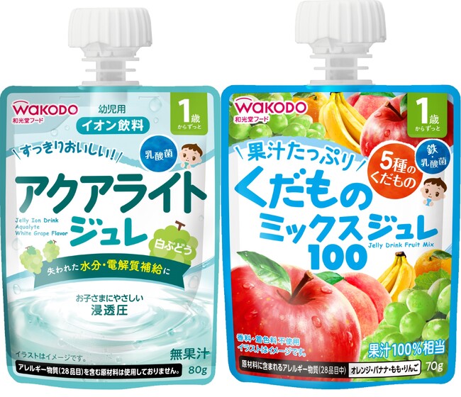 『1歳からのMYジュレドリンク アクアライト 白ぶどう』『1歳からのMYジュレドリンク くだものミックス100』3月4日発売