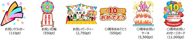 今回追加となる「投稿記念日ギフト」は、ユーザーがニコニコ動画に作品を投稿した“投稿記念日”の前後7日間限定で毎年販売されます。視聴者はこの期間、対象の作品に「投稿記念日ギフト」を贈ってお祝いすることができます。ギフトアイテムは花輪やクラッカー、ケーキなど6種類を展開し、「〇周年」が入ったアイテムには投稿からの年数に合わせた数字が記載されます。