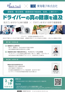 【バックテック×東海電子 合同ウェビナー】従業員の真の健康を追求!見えていますか?心身の健康×できていますか?点呼で健康管理3月19日(火)無料開催のお知らせ