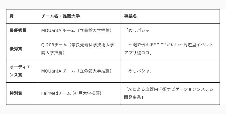 イノベーション人材の育成に取り組む関西圏の大学の推薦チームによるピッチコンテスト【KANSAI STUDENTS PITCH Grand Prix 2024】。7度目の開催となる今回は2024年2月22日(木)に大阪工業大学梅田キャンパスXportで開催。13チームの熱いピッチを終え、最優秀賞、優秀賞、オーディエンス賞、特別賞が発表されました。