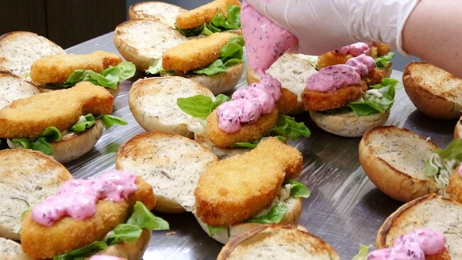 津軽海峡産の“Bタラ”を活用した<大間アゲ魚っ子>新メニューお披露目!「フィレオッタラバーガー」「フィッシュドポテト」「タラと野菜の具だくさんスープ」50食分をこども食堂で無償提供しました!