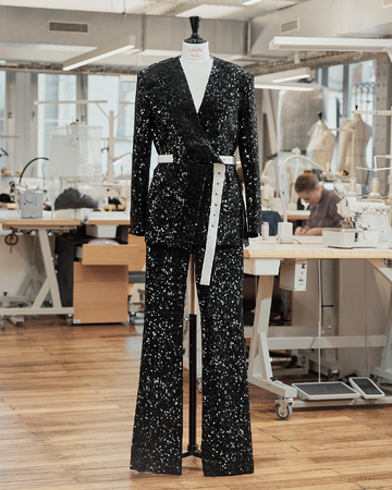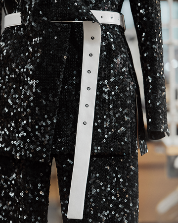 このスーツには、約9000個のスパンコールが刺繍に使用され、約200時間を要して制作されました。