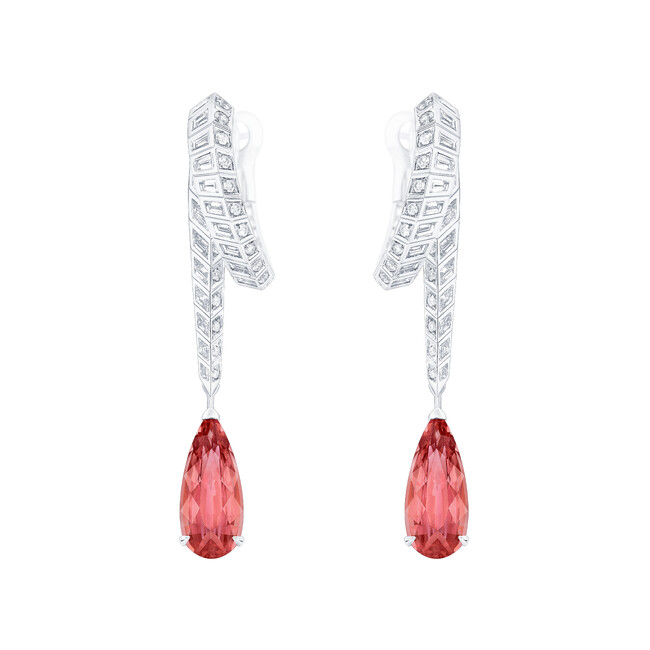 また、ルイ・ヴィトンのハイジュエリーコレクションから、ホワイトゴールド、ダイヤモンド、トパーズのイヤリングと、ホワイトゴールドとダイヤモンドのリングを着用しました。
