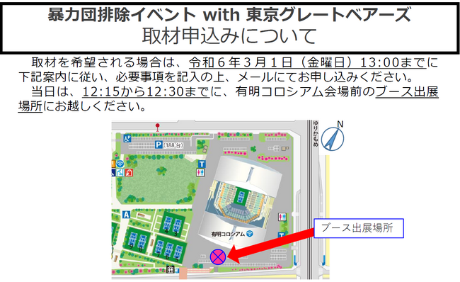 暴力団排除イベント with 東京グレートベアーズ取材申込み