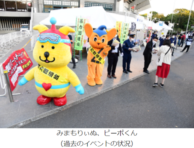 みまもりぃぬ、ピーポくん(警視庁シンボルマスコッ)が随時、出展ブースに登場し、啓発品、チラシ、イベント当日限定グッズ等を配布するとともに、暴力団排除と併せて、 匿名・ 流動型犯罪グループによる犯罪に巻き込まれないよう、注意を呼びかけます。