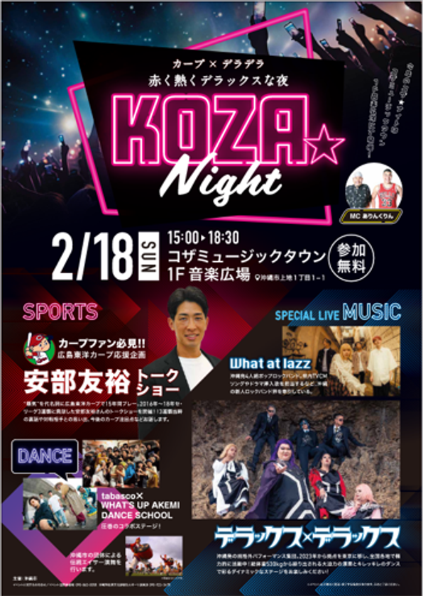 イベント名称:KOZA Night -カープ×デラデラ 赤く熱くデラックスな夜-