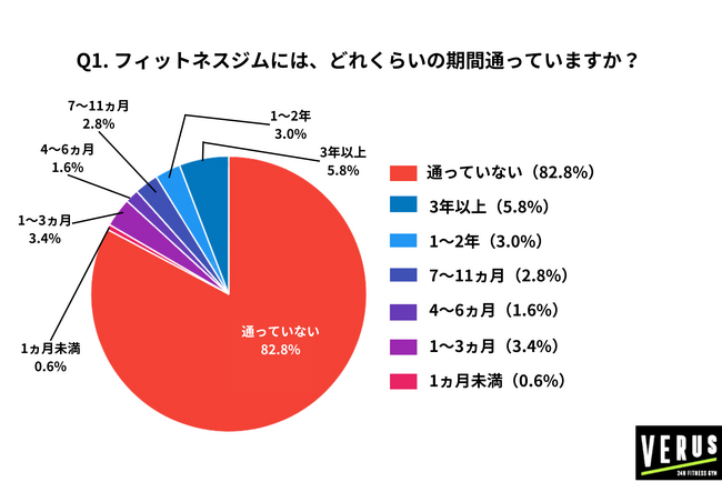 回答で最も多かったのは「通っていない(82.8%)」、次いで「3年以上(5.8%)」という結果となりました。また、通っている方のなかでは「1か月未満(0.6%)」と、1か月未満の利用は最も少ないことがわかりました。