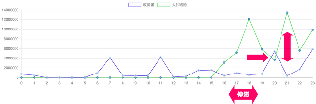 大谷選手結婚のPVが急上昇した時間帯は政倫審のPVが下がり、逆も見られる。