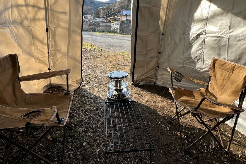 サイドウォールを併用すると冬でも気軽に外でランチを楽しめます。