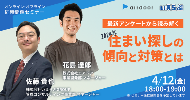 4/12(金)エアドア・いえらぶ共催セミナー「最新アンケートから読み解く2024年住まい探しの傾向と対策とは」