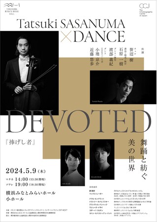 CCJ(一般社団法人コレオグラフィックセンター)、コンサートイマジン、DST-NEXT主催、笹沼 樹 チェロ 舞踊と紡ぐ美の世界『捧げし者』が2024年5月9日(木)に横浜みなとみらいホール小ホール(神奈川県横浜市西区みなとみらい2丁目3−6)にて開催されます。