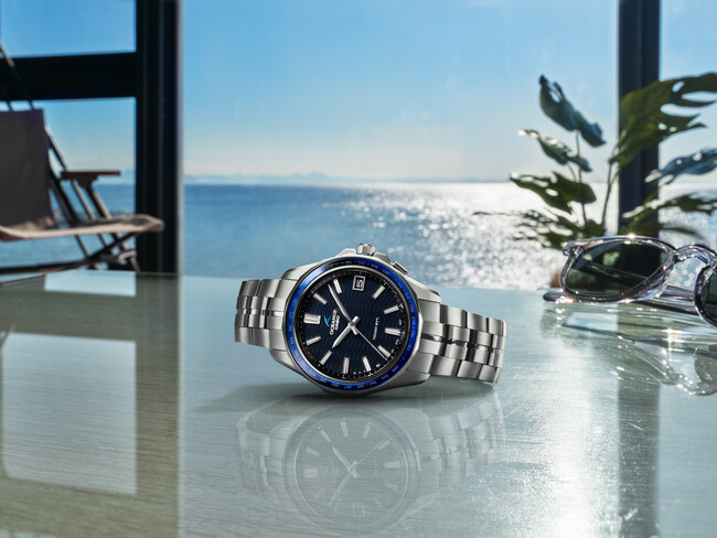 “OCEANUS”は「Elegance, Technology」をコンセプトに、高度な機能性と洗練されたデザインを併せ持つアナログ電波ソーラーウオッチです。なかでもプレミアムラインの“OCEANUS Manta”は、クロノグラフのスポーティ感と上質感を備えた薄型デザインが好評を博しています。