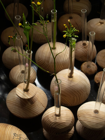 足元や野原に咲く、雑草の花を活けるための一輪挿し Wild flower 「風に揺れる」 作品制作や建設ででる端材をアップサイクルしている
