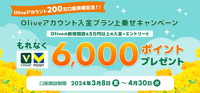 【Oliveキャンペーン】新規開設と条件達成で、もれなく6,000円相当のVポイントプレゼント!