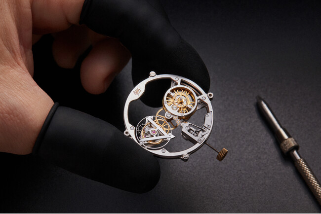 「ラ・ファブリク・デュ・タン ルイ・ヴィトン」内で独自に開発・設計されたこのフライング トゥールビヨンは、現代のハイウォッチメイキング分野におけるルイ・ヴィトンの類い稀な技術の証。