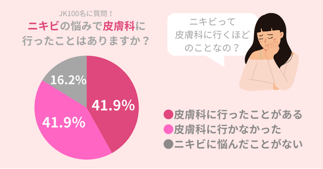 ・41.9%「ニキビに悩み、皮膚科に行ったことがある」