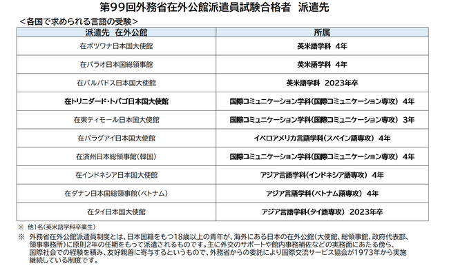 第99回外務省在外公館派遣員試験 神田外語大学から11人の学生・卒業生が合格