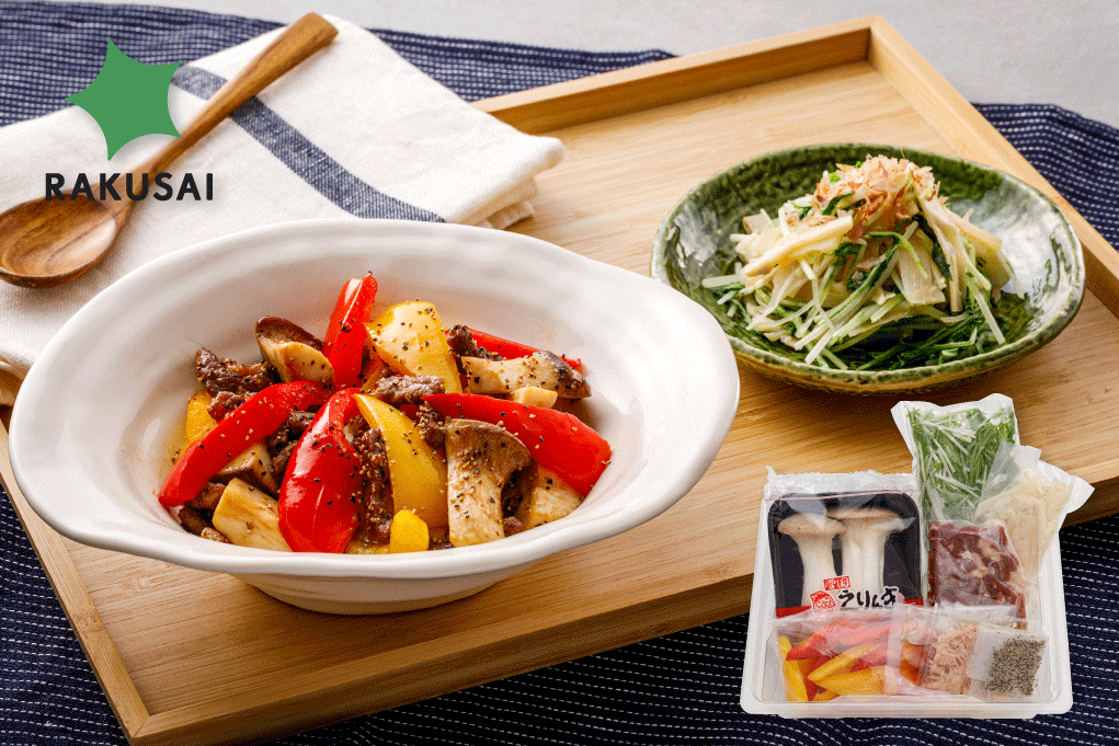 牛肉とパプリカの黒こしょう炒め&筍のおかか和え RAKUSAIオンラインショップ3/11販売