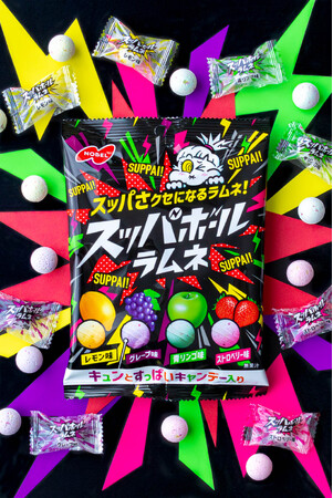 “体感系ラムネ”「パチボールラムネ」から“クセになる”新商品が仲間入り! 酸っぱさを感じつつも、酸っぱすぎない味わいが、やさしい口どけと共に楽しめる「スッパボールラムネ」