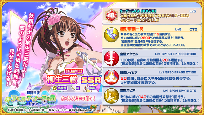 本日開始の「ティル・ナ・ノーグの泉ガチャVol.1」では、新たに「【妖精剣士】柳生三厳」(CV:田辺 留依)が登場。