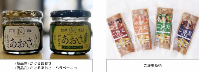 (松川浦かけるあおさ、松川浦かけるあおさハラペーニョ、あおさの佃煮)