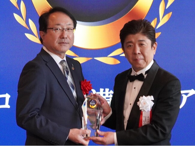 授賞式には、保険や塾、転職サービスなどさまざまな分野から選出された各社が参加しました。パルシステムからは、渋澤温之専務理事が出席し、オリコン株式会社の小池恒社長からトロフィーが手渡されました。