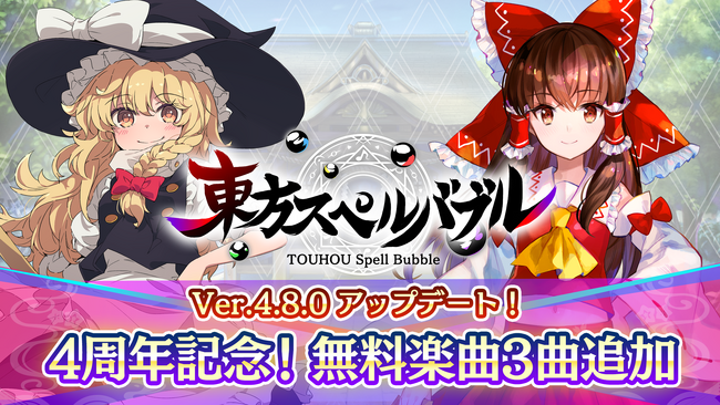 リズミカルパズルゲーム『東方スペルバブル』「博麗霊夢 楽曲パック」本日3月14日(木)より配信開始!さらに、4周年記念! 無料楽曲追加のアップデート実施!!